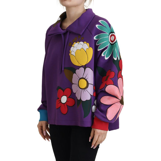 Dolce & Gabbana Purple Floral Print Cotton Long Sleeves Top