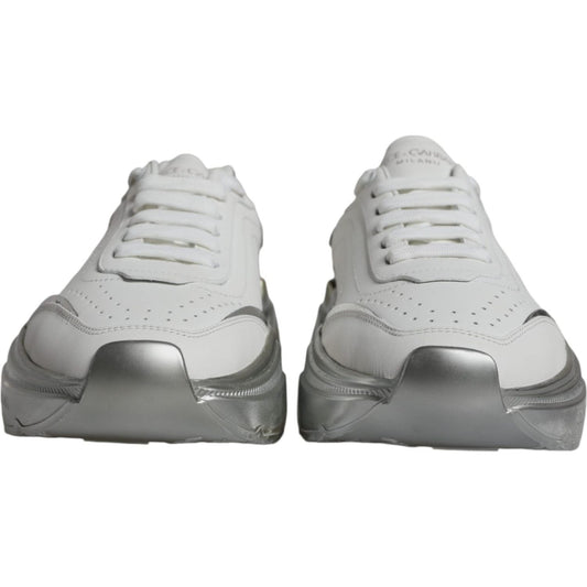 Dolce & Gabbana Silver White Daymaster Low Top Sneakers Shoes