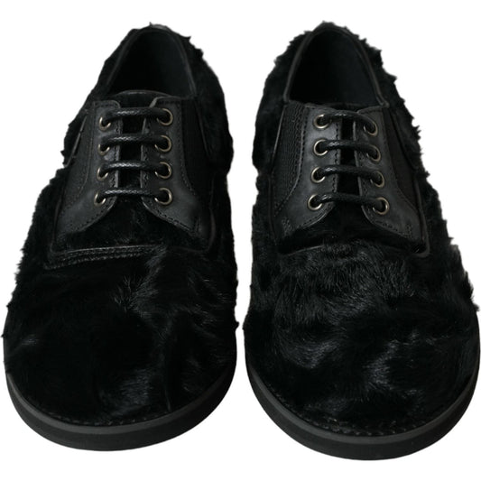 حذاء ديربي أنيق من الفرو الأسود للرجال من دولتشي آند غابانا
