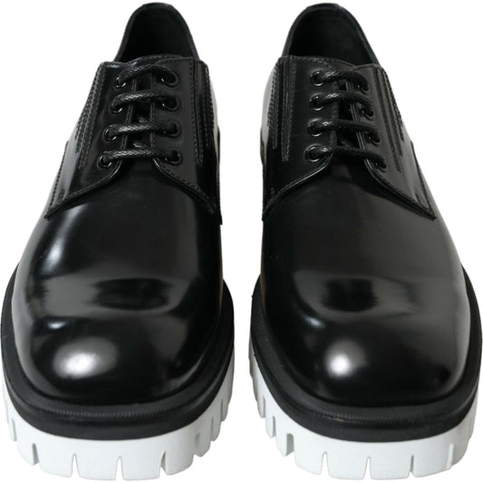حذاء ديربي جلدي باللونين الأبيض والأسود من دولتشي آند غابانا