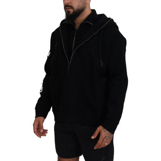 سترة Dsquared² سوداء بغطاء رأس وسحّاب كامل وأكمام مطبوعة