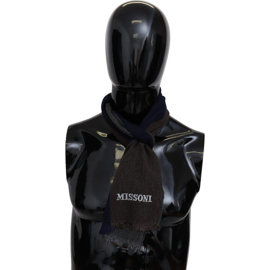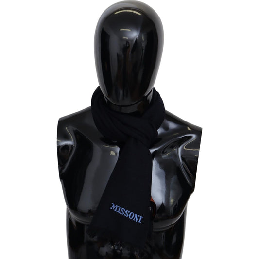 وشاح ميسوني الأنيق المصنوع من الصوف باللون الأزرق مع شعار مطرز