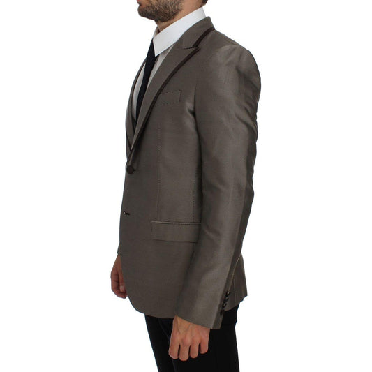 سترة أنيقة من الحرير باللون البني من دولتشي آند غابانا بقصة ضيقة ذات زرين