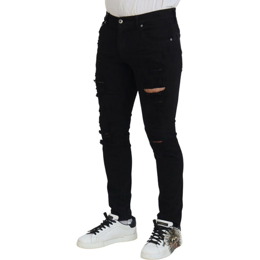 بنطلون جينز ضيق ممزق باللون الأسود من دولتشي آند غابانا