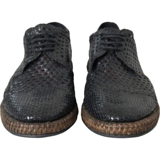 حذاء ديربي من جلد الماعز المنسوج باللون الأسود من دولتشي آند غابانا برباط