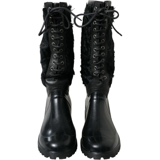 حذاء دولتشي آند غابانا الأنيق المصنوع من جلد الغنم الأسود بطول منتصف الساق