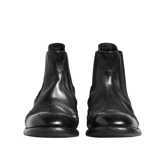 Dolce & Gabbana Black Leather Ankle Boots Slip On Shoes