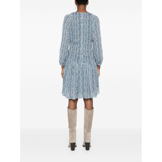 فستان رالف لورين بني من الفيسكوز بفتحة رقبة على شكل حرف V وطول الركبة