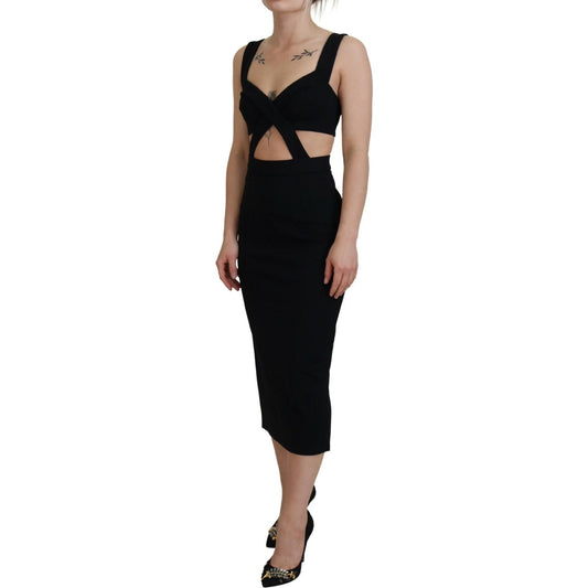 فستان دولتشي آند غابانا الأسود الأنيق متوسط الطول