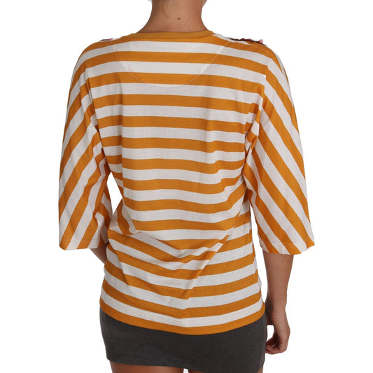 بلوزة Dolce & Gabbana FIRENZE مزينة بالترتر باللونين البرتقالي والأبيض