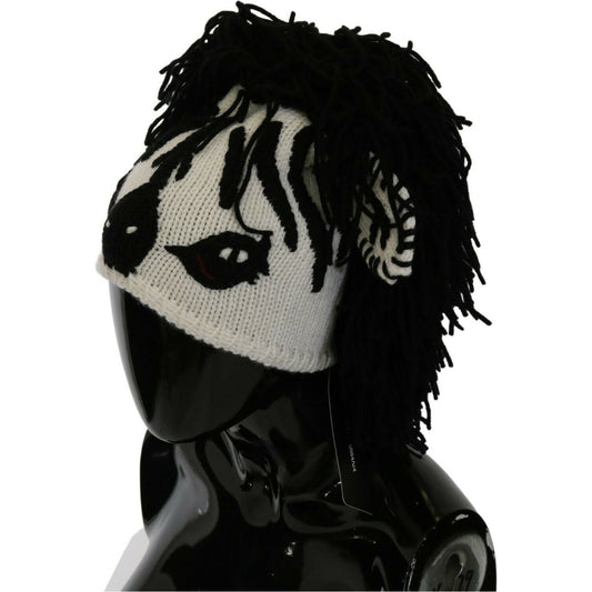 قبعة كشمير محبوكة باللونين الأبيض والأسود من دولتشي آند غابانا