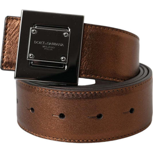 حزام دولتشي آند غابانا المصنوع من الجلد باللون البرونزي المعدني بمشبك معدني مربع