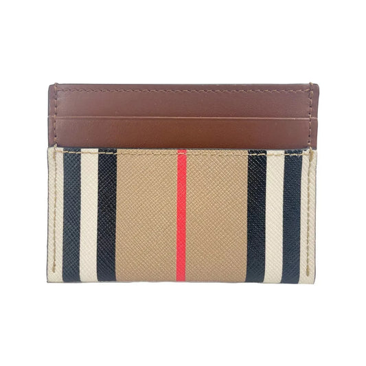 محفظة بطاقات رفيعة من الجلد بطبعة مربعات من قماش كانفاس بلون بني من بربري ساندون