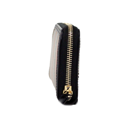 محفظة بربري إيلربي القارية المصنوعة من الجلد الأسود والمزينة بخطوط من القماش بسحّاب