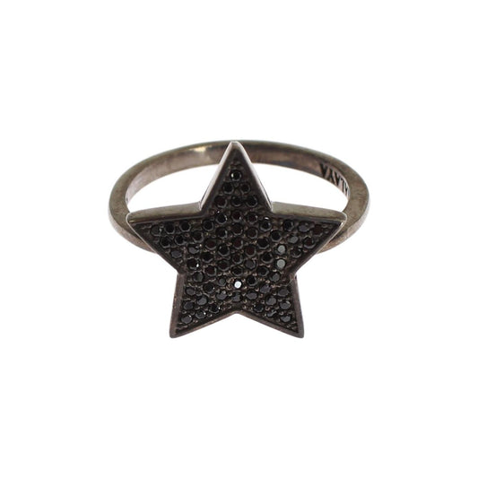خاتم نيالايا الأنيق المصنوع من الكريستال الفضي باللون الأسود والروديوم