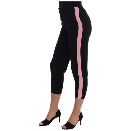 بنطلون كابري أسود أنيق من دولتشي آند غابانا مع خطوط جانبية وردية