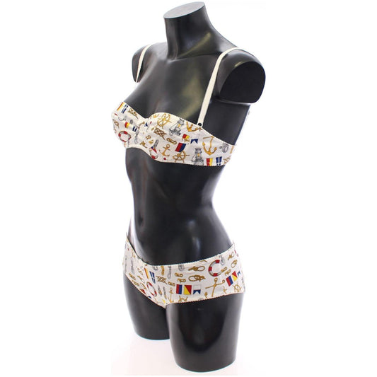 طقم ملابس داخلية أنيق بطبعة البحار باللون الأبيض من دولتشي آند غابانا