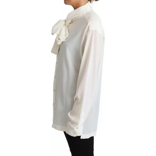 بلوزة دولتشي آند غابانا بيضاء بقبة أسكوت وقميص من الحرير بأزرار