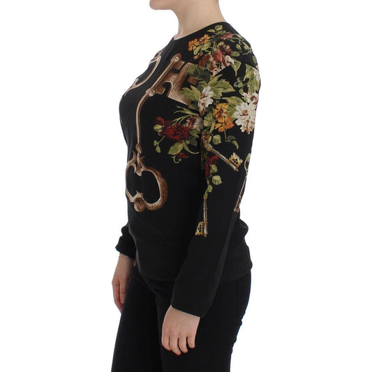 بلوزة من الحرير من مجموعة دولتشي آند غابانا Enchanted Sicily بطبعة مفاتيح العصور الوسطى