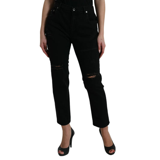 Dolce & Gabbana Black Cotton High Waist Tattered Denim Jeans