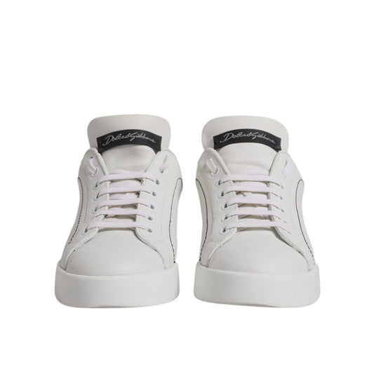 Dolce & Gabbana White Black Leather Low Top Sneakers Shoes