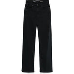 black stretch-design denim concealed fly and button fastening belt loops classic five pockets logo patch to the rear wide leg Baggy wide denim jeans Size and Fit - This piece fits true to size. We recommend you get your regular size. Model is 1,75m / 5ft 8in wearing size 27 (WAIST CM)