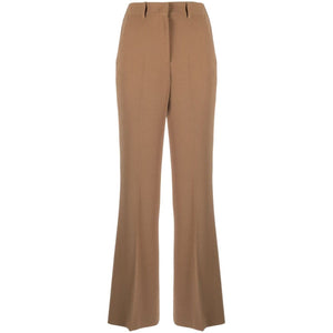 crepe high-waist flared trousers from ALBERTO BIANI featuring camel brown, crepe texture, belt loops, concealed front fastening, pressed crease, rear elasticated waistband, high waist, flared hem, two side inset pockets and two rear welt pockets. Wide leg cady trousers Size and Fit - This piece fits true to size. We recommend you get your regular size. Model is 1,75m / 5ft 8in wearing size 40 (IT)