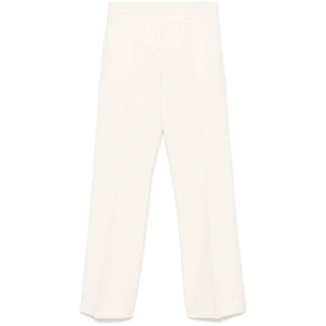 white virgin wool blend interlock twill weave flared leg concealed front button, hook and zip fastening belt loops two side slash pockets pressed crease rear jetted pocket Wool flared trousers Size and Fit - This piece fits true to size. We recommend you get your regular size. Model is 1,75m / 5ft 8in wearing size 40 (IT)