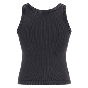 anthracite grey cotton fine ribbed appliqué logo round neck sleeveless straight hem Logo ribbed cotton tank top Size and Fit - This piece fits true to size. We recommend you get your regular size. Model is 1,75m / 5ft 8in wearing size S