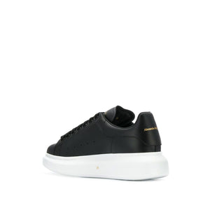 Black leather Oversized low-top sneakers from Alexander McQueen featuring branded heel counter, logo-print tongue, round toe, front lace-up fastening and flat rubber sole. Oversized leather sneakers Size and Fit - Heel 1,8 in / 4,5 cm; Platform 1,4 in / 3,5 cm