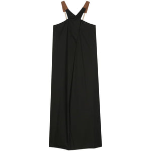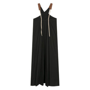 black cotton poplin texture contrasting grosgrain ribbon thin straps crossover strap detail to the front V-neck sleeveless two side inset pockets mid-length straight hem pull-on style Poplin long dress Size and Fit - This piece fits true to size. We recommend you get your regular size. Model is 1,75m / 5ft 8in wearing size 40 (IT)