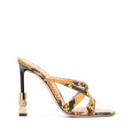 snakeskin-print 110mm leather mules from BALLY featuring mustard yellow, smoky black, calf leather, all-over snakeskin print, gold-tone hardware, branded insole, open toe, round toe, slip-on style and high heel. Carolyn leather mules Size and Fit - Heel 4,5 in / 11,5 cm