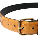 حزام دولتشي آند غابانا من جلد التمساح باللون البيج مع مشبك معدني