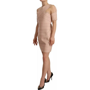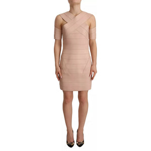 فستان قصير من الجلد باللون البيج من Dsquared² مفتوح الكتفين