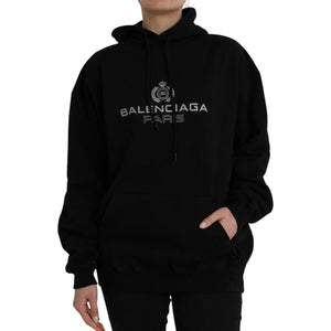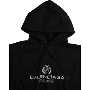 Balenciaga Black Cotton Logo Hooded Pullover Sweatshirt Sweater