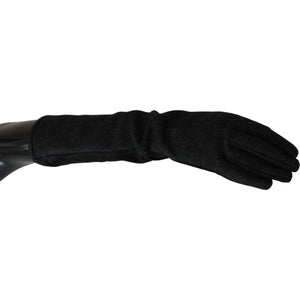 Dolce & Gabbana Black Gray Mid Arm Length Mittens Wool Gloves LB1021-7.5