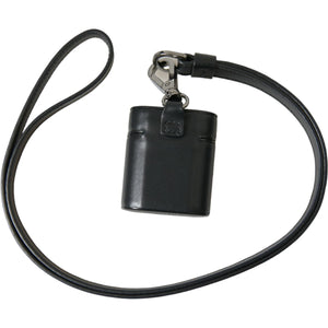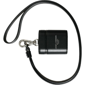 حافظة Airpods من Dolce & Gabbana بحزام جلدي أسود وشعار معدني فضي مطبوع