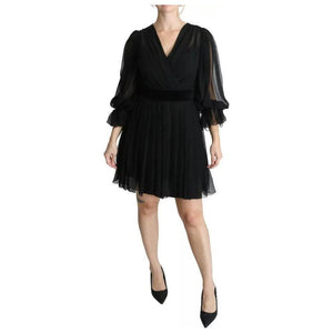 فستان دولتشي آند غابانا قصير من الحرير المخلوط بثنيات باللون الأسود