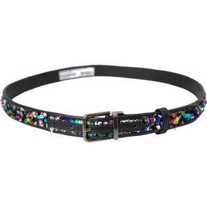 حزام نسائي من دولتشي آند غابانا مزين بالترتر الأسود ومشبك معدني فضي