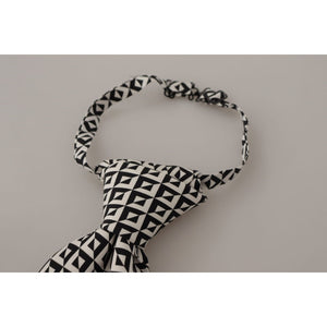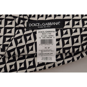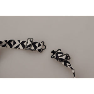 • Dolce & Gabbana Black White Geometric 100% Silk Adjustable Accessory Tie KRA3194