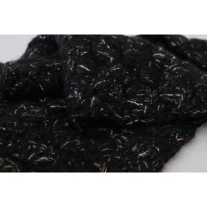 Dolce & Gabbana Black Wool Knitted Wrap Foulard Fringe Scarf