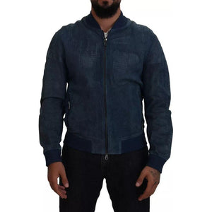 جاكيت دولتشي آند غابانا أزرق من الجلد المثقب بسحاب كامل