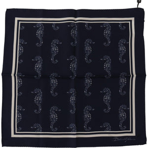 وشاح رجالي أنيق من الحرير بطبعة فرس البحر باللون الأزرق من دولتشي آند غابانا