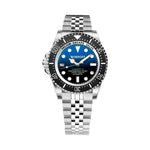 5mm Zafiro Crystal with anti -reflexes – Crown to Rosca – Luminescent needles and indices in light blue – hand -Gradient color sphere, the final finish can differ a little of the photos shown – 316L steel strap with screwed links and expansion for diving suit – helium valve – Loading Load Reserve of 41h