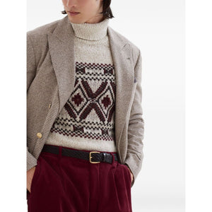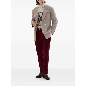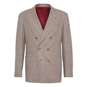taupe brown double-breasted button fastening chest welt pocket two front patch pockets buttoned-cuff sleeves Wool and silk double-breasted jacket