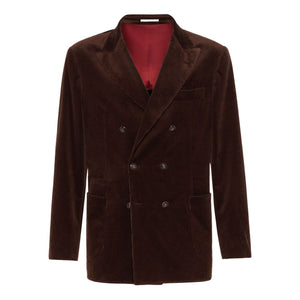 coffee brown double-breasted button fastening chest welt pocket two side patch pockets English rear vents Cotton double-breasted jacket
