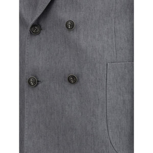 Brunello Cucinelli’s linen Suit is an elegant and sophisticated piece, perfect for a formal or refined look. The linen blazer jacket features a double-breasted front button closure and two slit pockets applied to the front, offering a practical yet stylish design. A slit pocket on the front and spear lapels add a touch of sophistication. The classic linen pants, with a front zipper and button closure, feature two side slit pockets and two welt pockets on the back, while belt loops on the waistband allow for a customized fit. With its monochrome pattern, this suit is ideal for those seeking a high-quality suit that combines elegance and comfort.