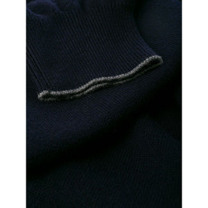 Navy blue cashmere knitted construction funnel neck short front zip fastening long sleeves ribbed cuffs and hem straight hem Cashmere high-neck sweater