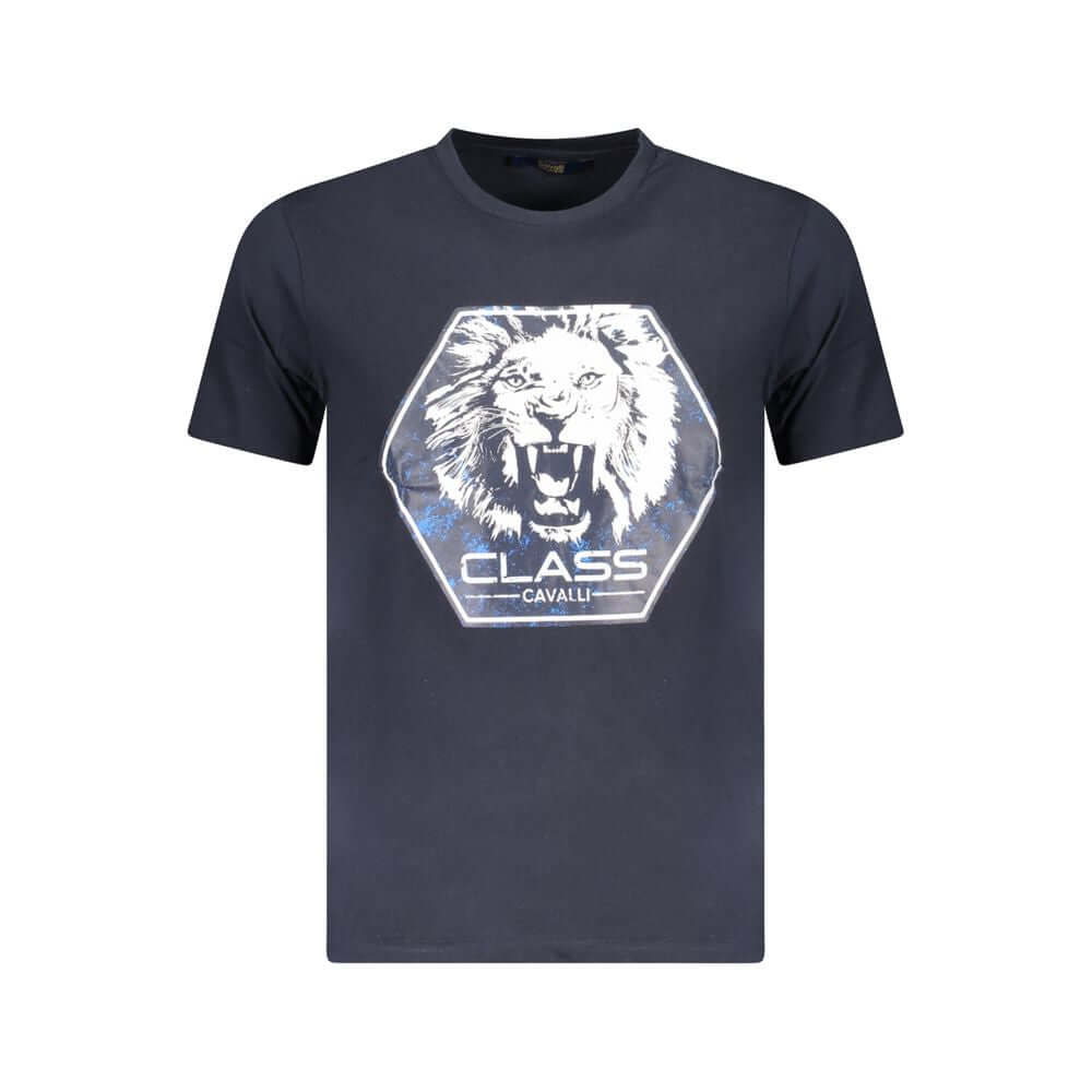 Revitalize your wardrobe with a dash of Cavalli Class’ signature Italian finesse. This suave, blue T-shirt is more than a basic; it’s a statement. Boasting a bold print that commands attention and the iconic Cavalli Class logo, this tee is a fusion of comfort and style with its soft cotton composition. Perfectly paired with denim or casual trousers, it ensures you exude confidence with every wear. Elevate your casual ensembles effortlessly with this must-have garment.