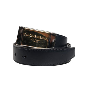 Dolce & Gabbana Black Blue Leather Gold Buckle Reversible Belt